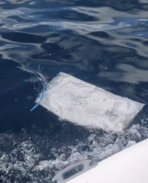 Amasra’da balıkçılar, deniz yüzeyinde görülen plastik ve evsel atıkları görüntüledi.