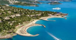 Bodrum’un nadide bölgelerinden Cennet Koyu’nda Cengiz Holding inşaata devam ederken, projede yazlık sarayda olduğu gibi hilal şeklinde iki ayrı plaj yapılacak.
