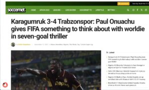 Trabzonspor’un Paul Onuachu, Karagümrük maçındaki röveşata golüyle uluslararası dikkat çekti.